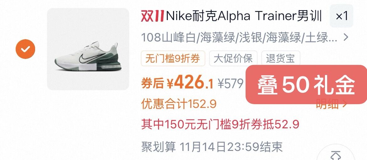 1耐克气垫训练鞋💰426.1