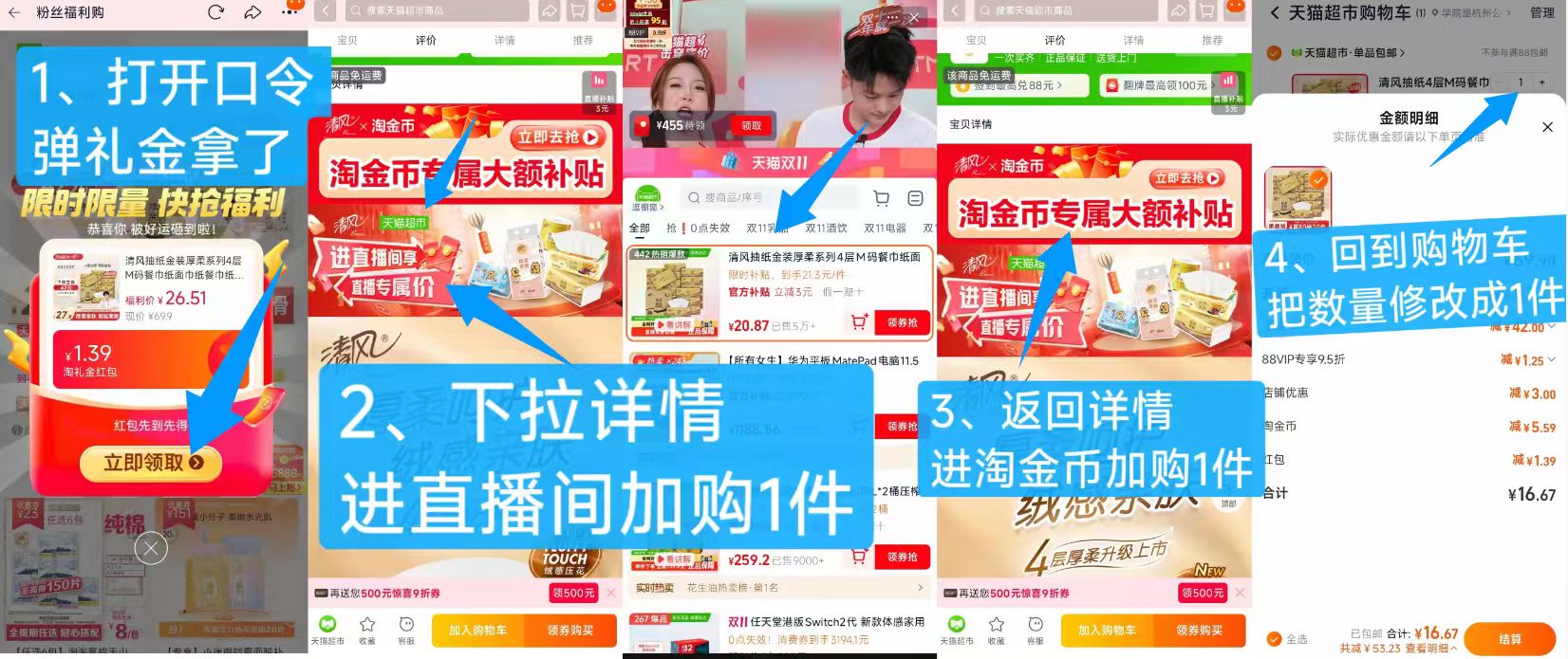 1速度‼8毛一包的清风抽纸 清风抽纸金装20包 16.6 - 打开口令弹礼金拿了