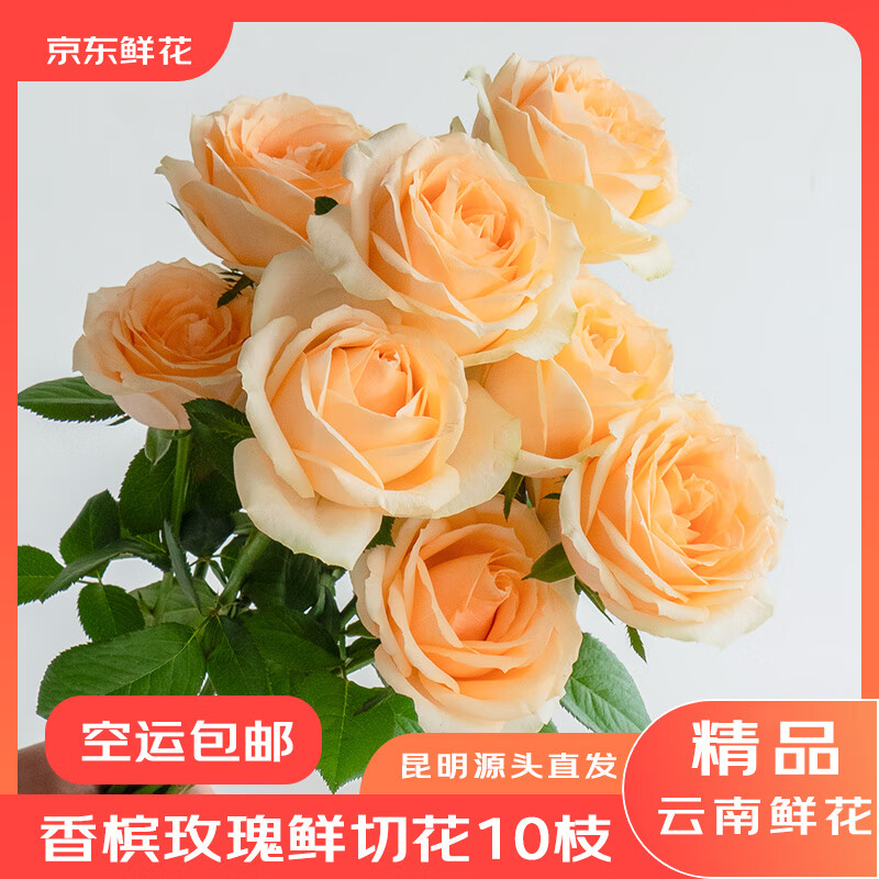 京东鲜花云南昆明基地鲜花直发香槟玫瑰10支5.9元