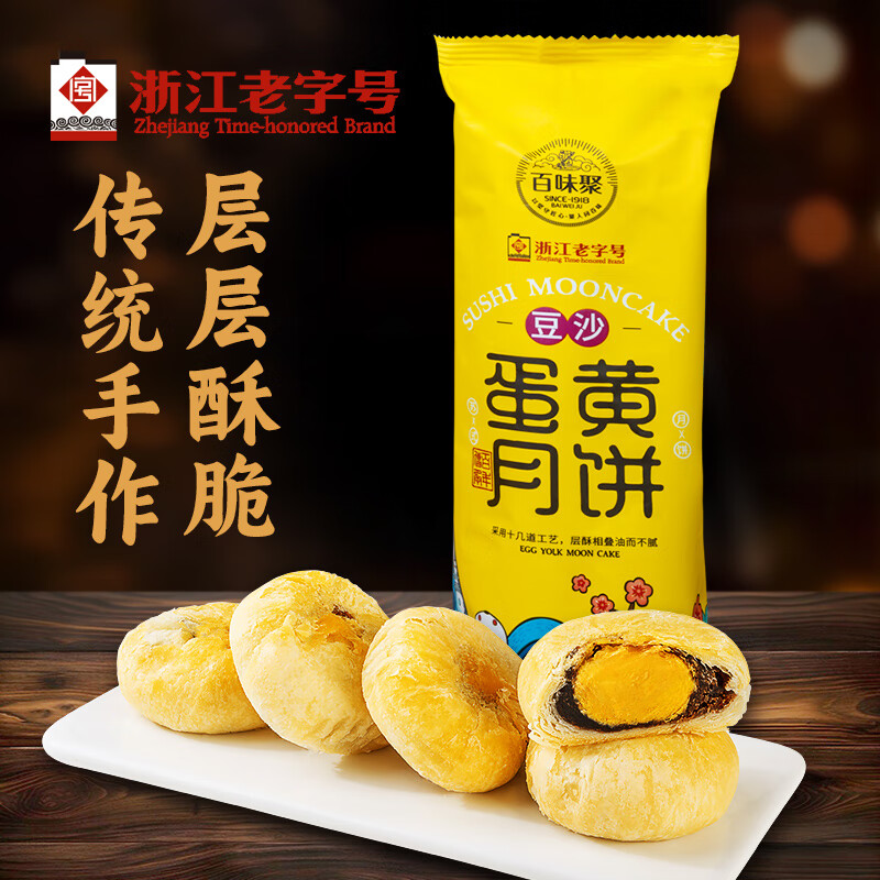 按需 百味聚 苏式蛋黄豆沙月饼8枚筒装320g 3首单,凑后1.46