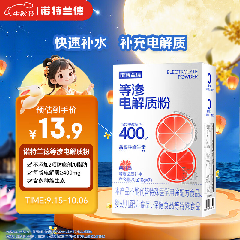 掉落12券 付1.9亓 诺特兰德 等渗电解质粉 10克*7袋/盒 西柚味