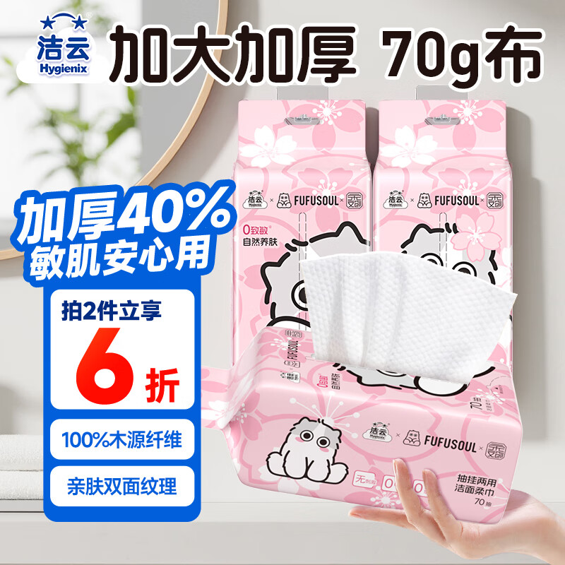 洁云一次性洗脸巾70抽*3包 加厚L码,店铺入会买7件86元