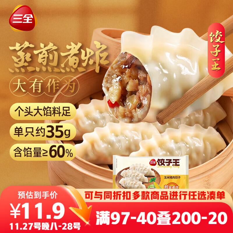 领97-40券https://u.jd.com/WDNgfw0 领黑五200-20卷https://u.jd.com/WGNZ5SX 三全 饺子王 饺子 420g*2袋任选5件凑后58元 折5.8/袋https://u.jd.com/WaNP3Q2 https://u.jd.com/W1NfxMo https://u.jd.com/WrN6ywG 凑https://u.jd.com/W6NgjTE