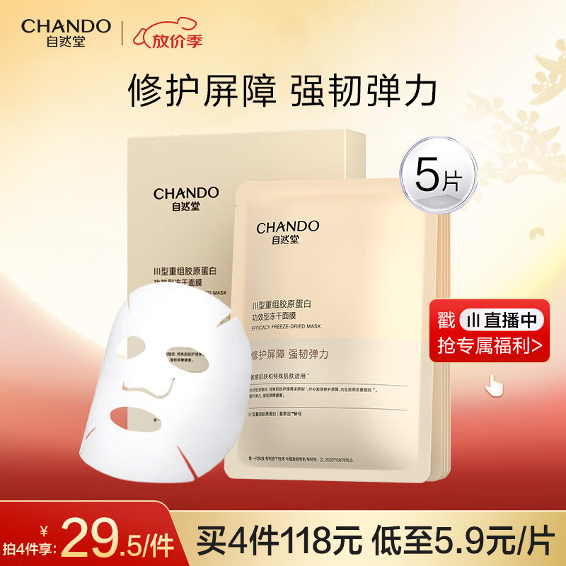 自然堂 胶原冻干面膜5片 如砸20券 进直播间4虹包,5.5