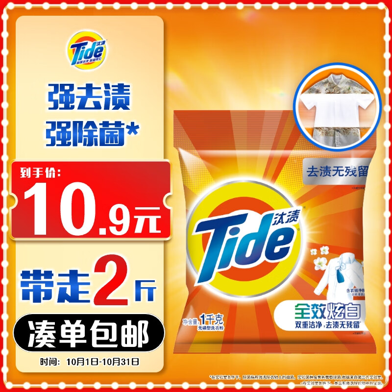 汰渍全效炫白洗衣粉2斤 如砸10-9.9奍1亓