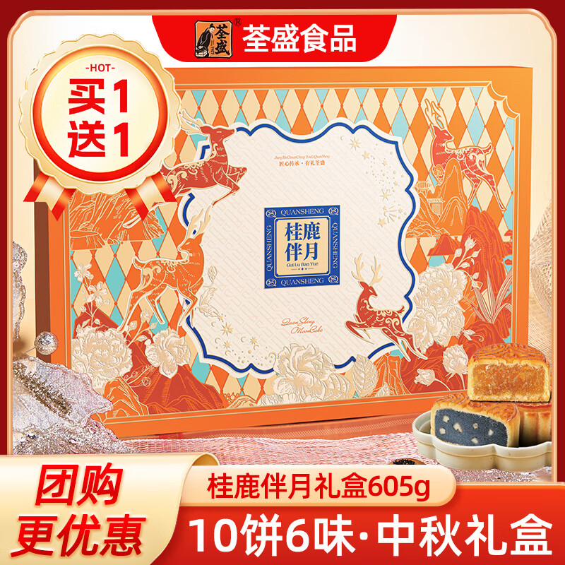 荃盛 月饼礼盒鹿月华章桂鹿伴月605g 3件4折买1送1折5亓/件 专区