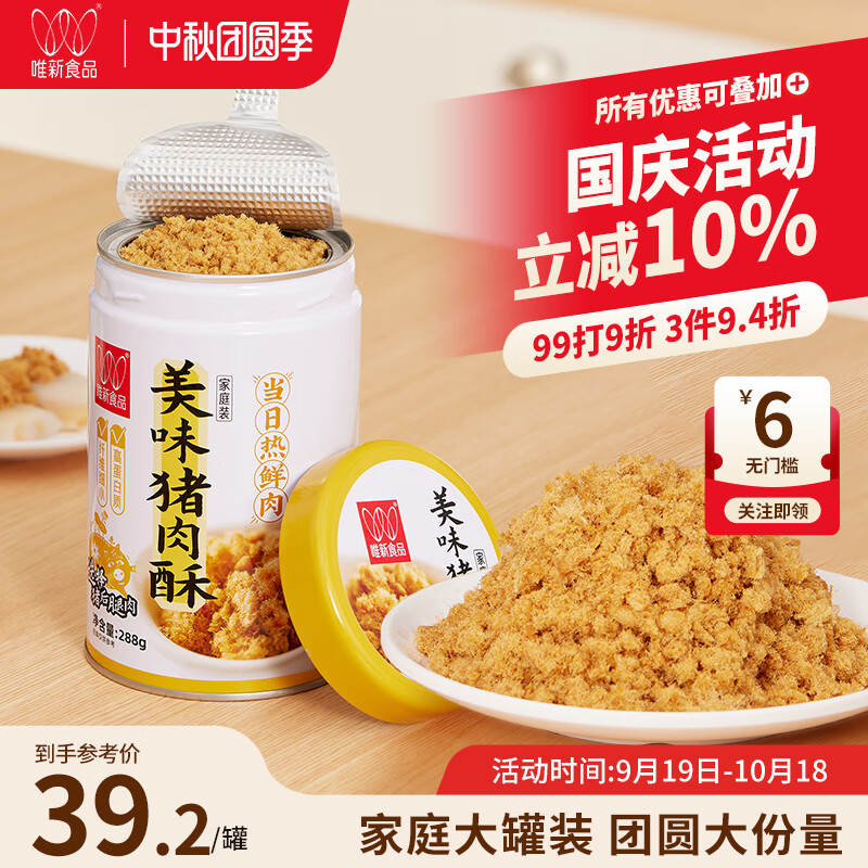唯新肉松高蛋白猪肉酥大罐装288g 4件每件11.78