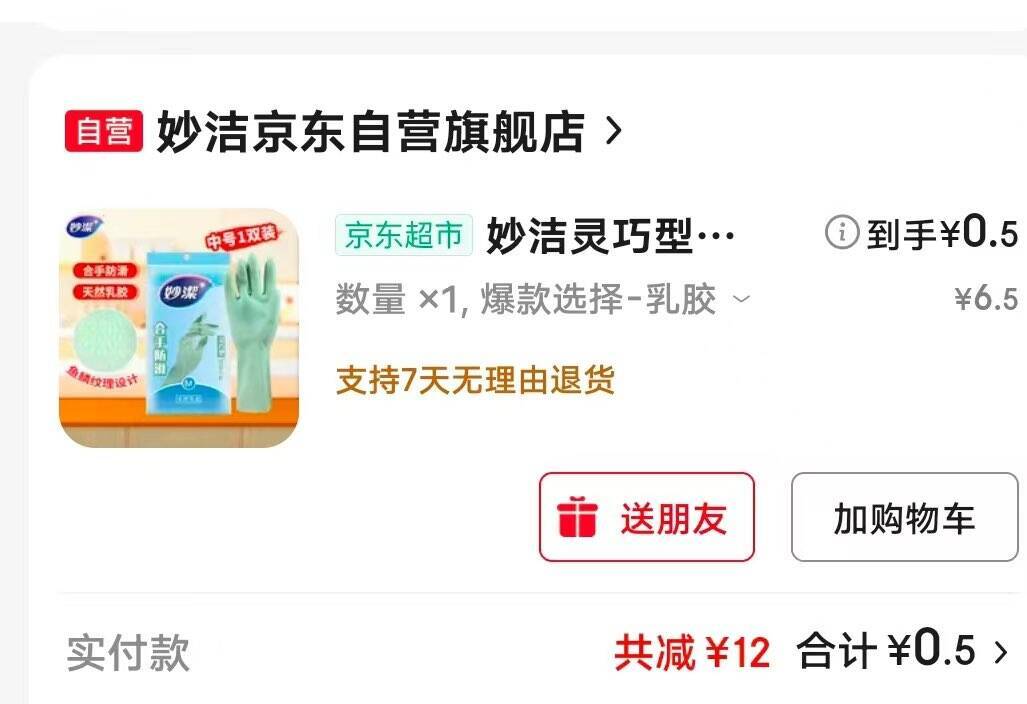 妙洁家务如胶手套中号1双装 跳转APP浏览砸落或者加车砸蛋 砸落5奍 1首单0.5元