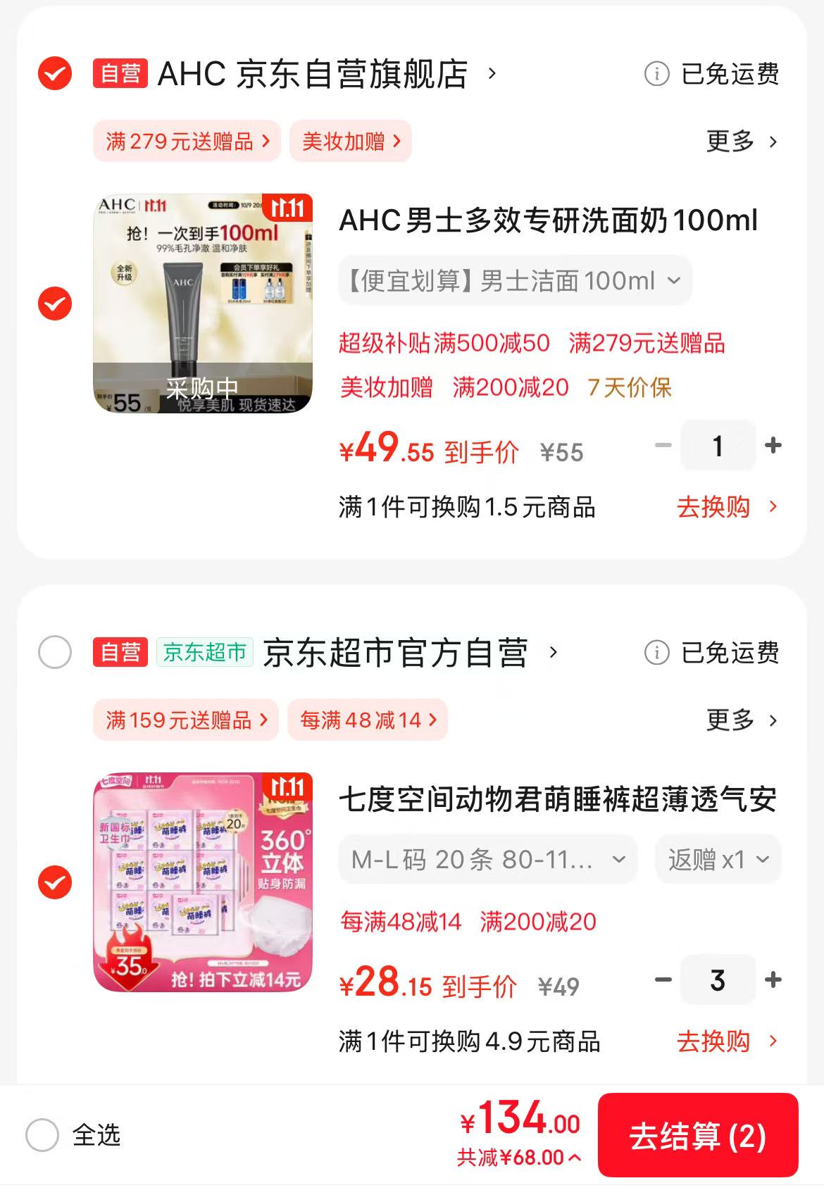 4件一起 萌睡裤凑后84.4元 反9超市卡