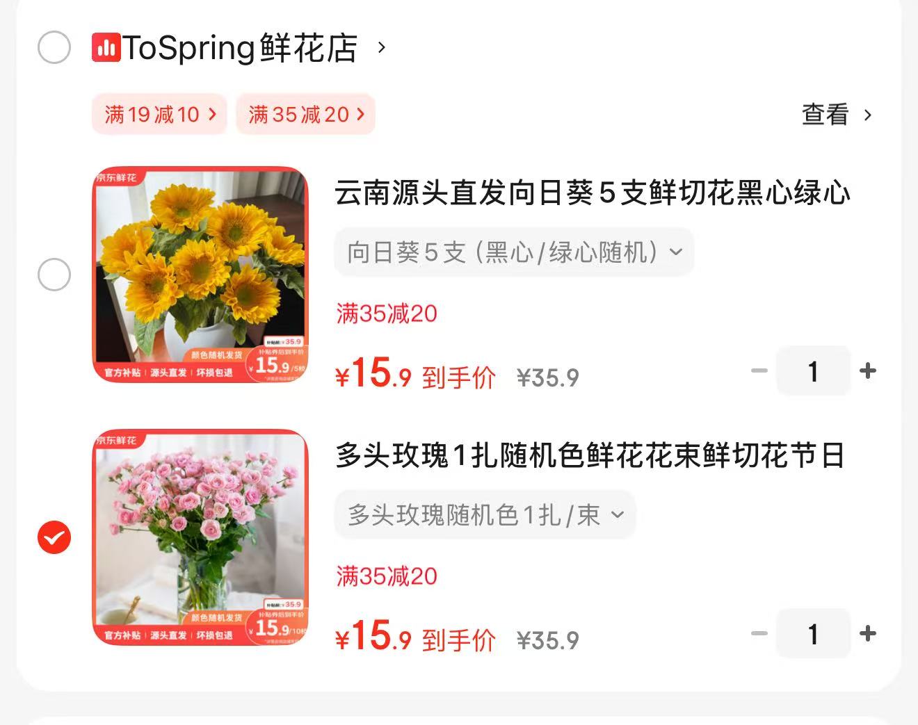 ToSpring 多头玫瑰随机色1扎/束 ToSpring 向日葵5支(黑心/绿心随机)