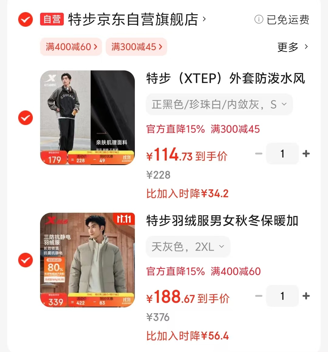 领600-130卷https://coupon.m.jd.com/coupons/show.action?key=cam0casdo9a54dfeb6ea5dc5985b0ffe&roleId=1456512607领200-30券https://u.jd.com/0OFyfdY领199-20券https://u.jd.com/06FZOWu自营特 步男女同款三防羽绒服拍 https://u.jd.com/0DFyyAd凑 https://u.jd.com/0OFJZnJ到手188.67元